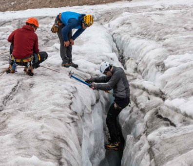 "Not only was the weather perfect and the scenery beautiful, but it was a laugh (riot)! What a great group of wonderful people to experience it with! Falling in crevasses is fun!!"