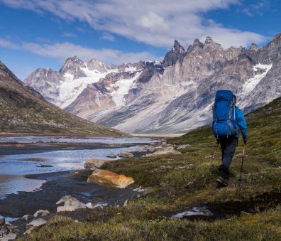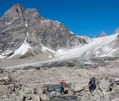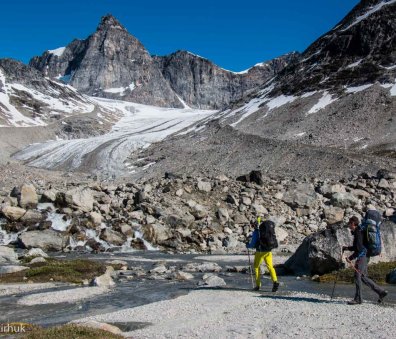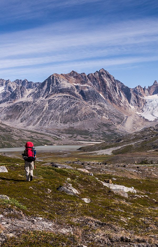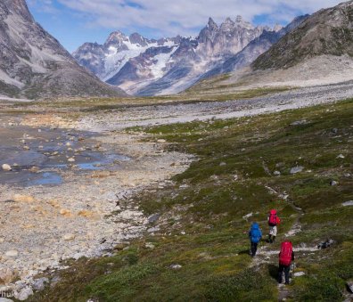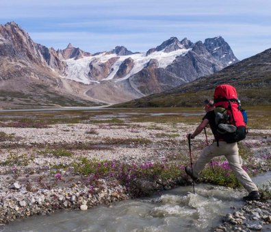 High pressure from the icecap often brings clear, still days of sunshine but north easterlies can drive in rain and wind so good storm gear is essential. Time allowing, we aim to take a couple of shorter days and will also leave our big rucksacks behind one day to climb a summit for wild views out over the fjord.