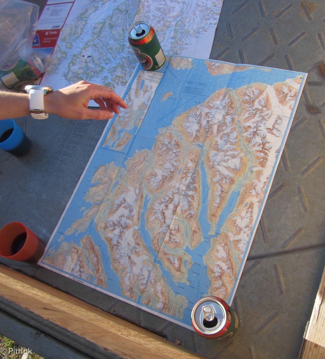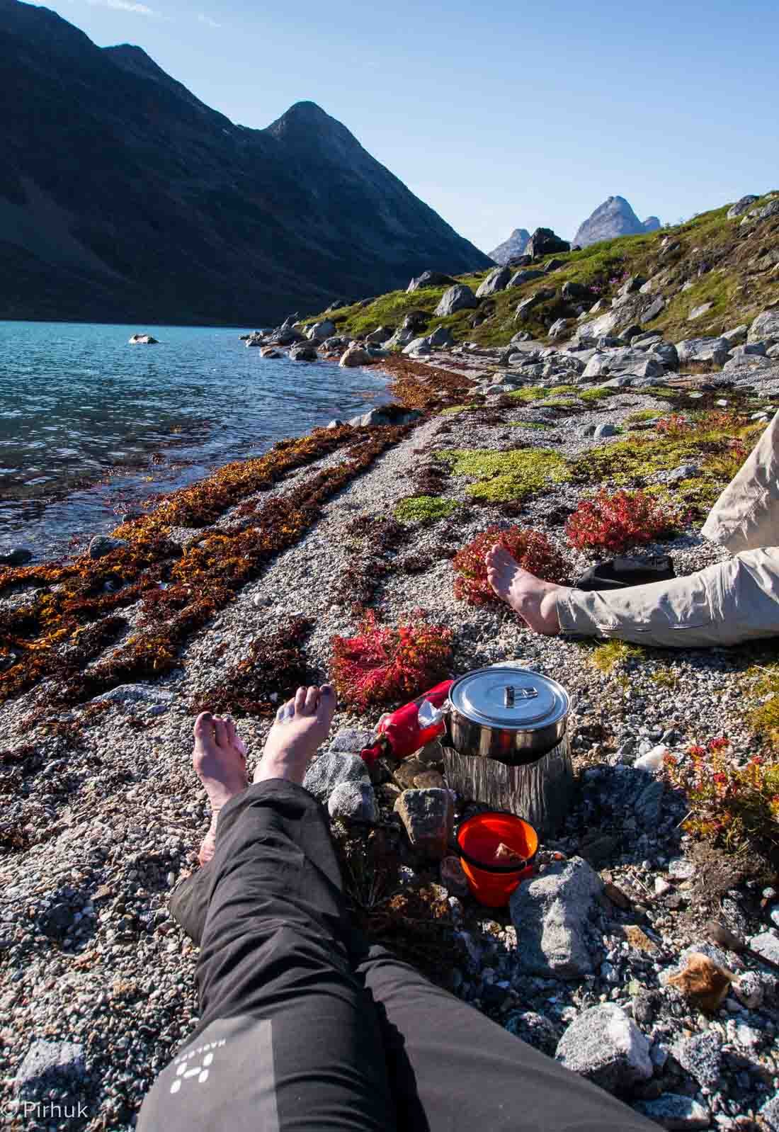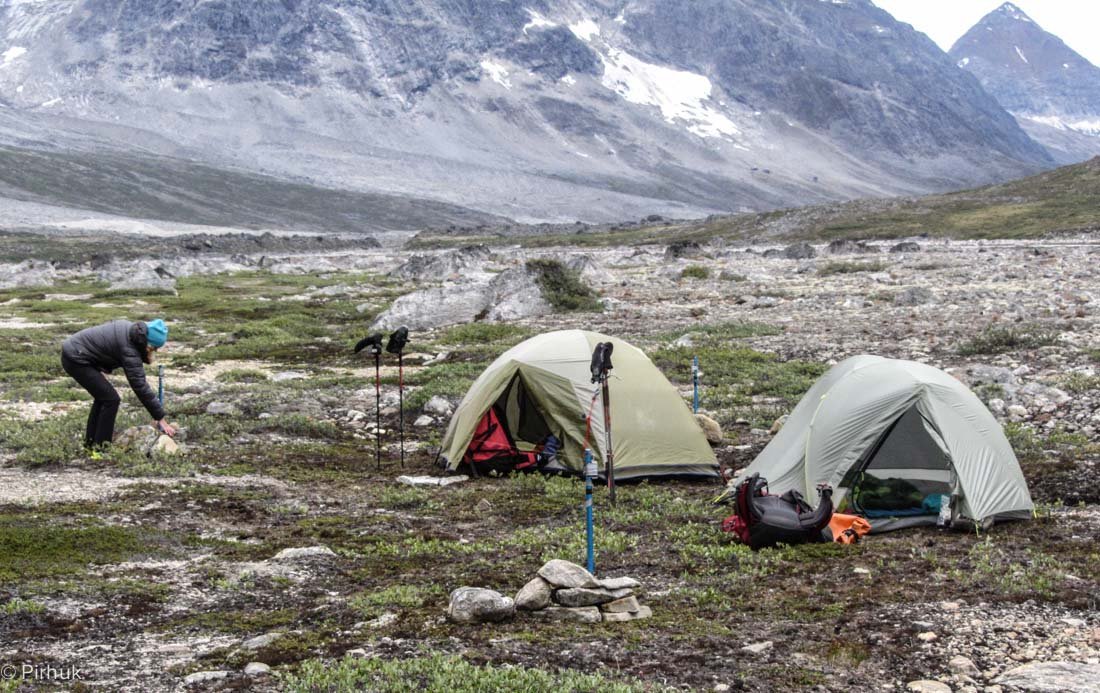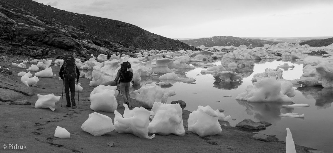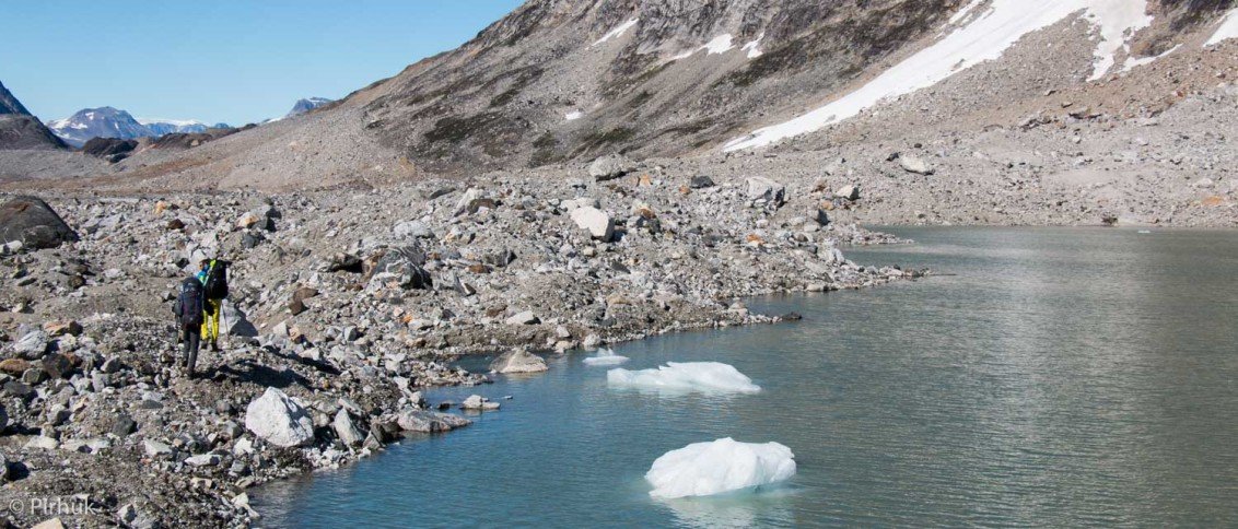 Our route starts relatively gently, following the banks of an arctic char stream. Passing by a lake (not marked on the basic map that covers this region), we’ll descend to an old Tunuumi (East Greenlandic) fishing site in use for many hundreds of years.