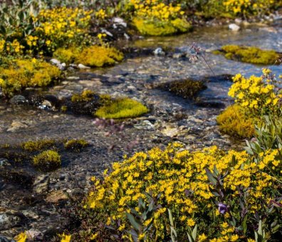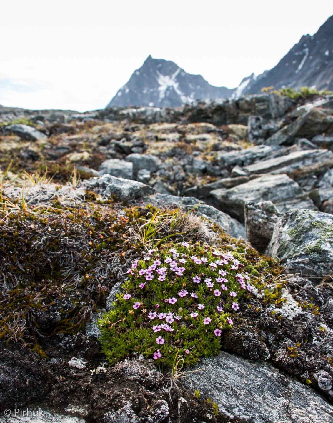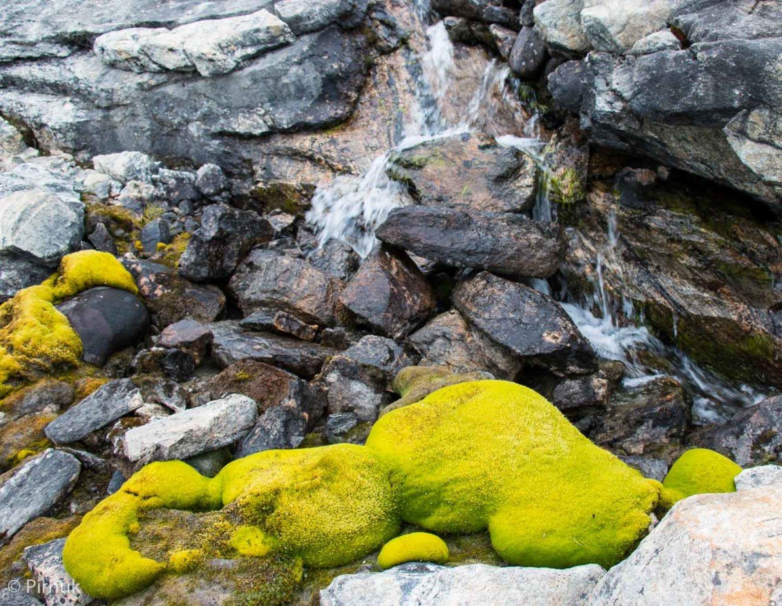 Around mid-point, to collect a re-supply laid by boat, we head east over the watershed to the headwaters of Qingertivaq, exploring a rich valley system where char run the streams, the tundra thrives and we've seen peregrine falcons.